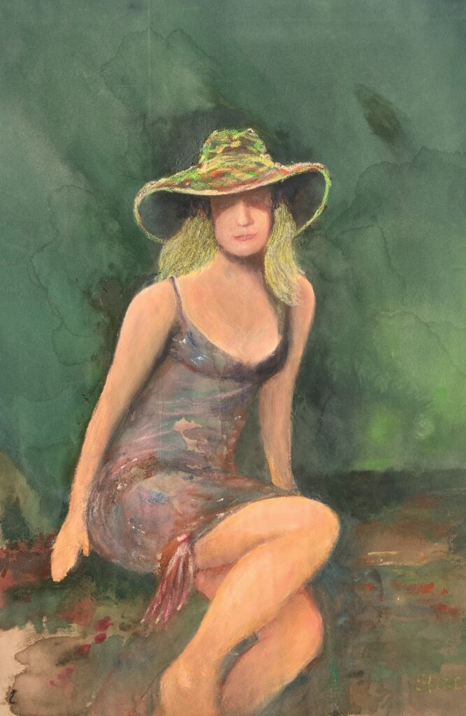 WOMAN IN HAT, 45*65, acrylic on velour paper