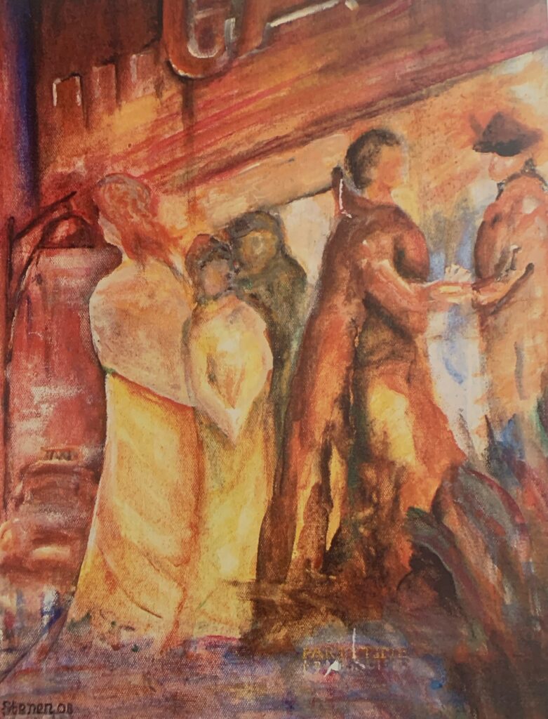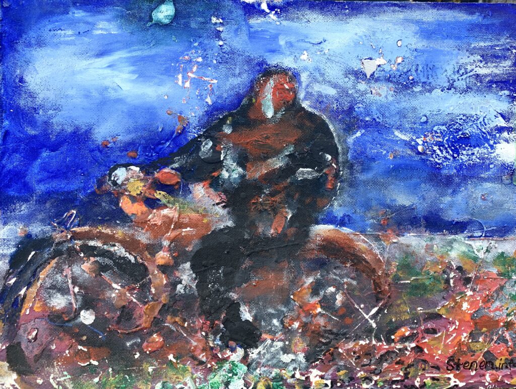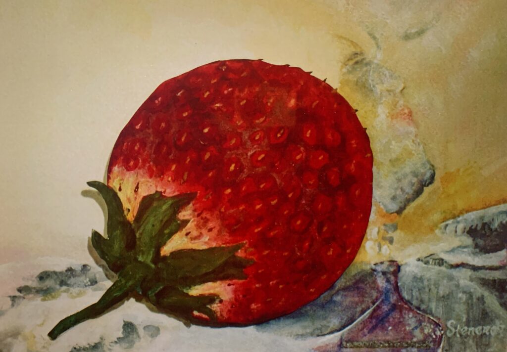 JORDGUBBSKYSS akryl och akvarell. inköpt av Karlstad Kommun